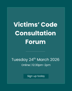 Join us for our online forum on the 24th of March between 12:30 and 2pm to share your view. We will be explaining the current Victims Code provisions and the Government’s proposed changes in the event, so you don’t need any prior knowledge to attend.