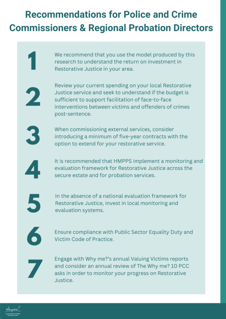 This project represents an innovative approach to demonstrating the value of Restorative Justice. Economic evaluations are underutilised in the social sector, but are compelling in demonstrating the best possible outcomes in the prevention of crime with limited resources. Through the unique partnership between an experienced economist, Frank Grimsey Jones, and Why me?, we conducted a rigorous piece of research which is designed to make a substantial and lasting contribution to the Restorative Justice evidence base and impact decision making.